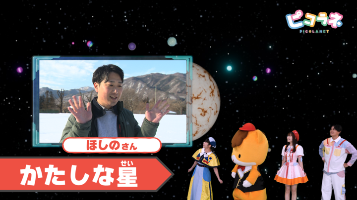 かたしな星は真っ白な雪の世界!雪〇〇〇みんなも作ったことある?スノーボードにも挑戦!うまく滑れるかな?「なんで寒い所にいる動物は白い色が多いの?」も解決!